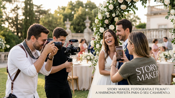 - Harmonia de Trabalho: Quando o Story Maker é profissional, ele entende que seu papel é complementar. Ele sabe respeitar o espaço da câmera principal, buscando ângulos diferentes e focando em detalhes menos "posados", resultando em uma cobertura de 360 graus para o casal.